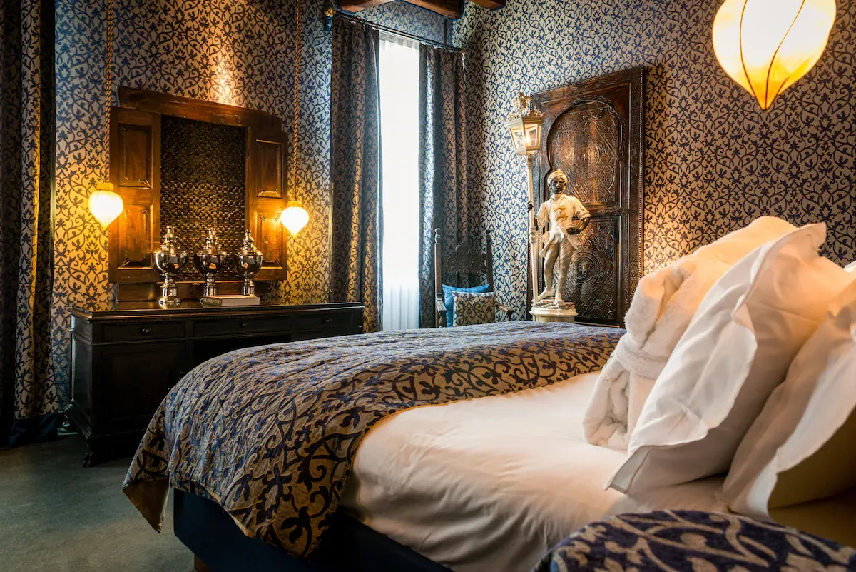 The hotel itself is unapologetically romantic. Interiors lean into themed Venetian elegance, with richly decorated rooms, curated details, and a mood that feels deliberate rather than decorative. A private dock simplifies water arrivals, while the rooftop terrace offers panoramic views that reward guests at the end of the day—especially at sunset.