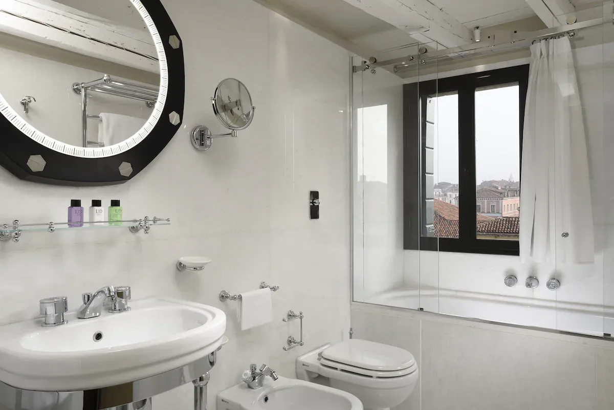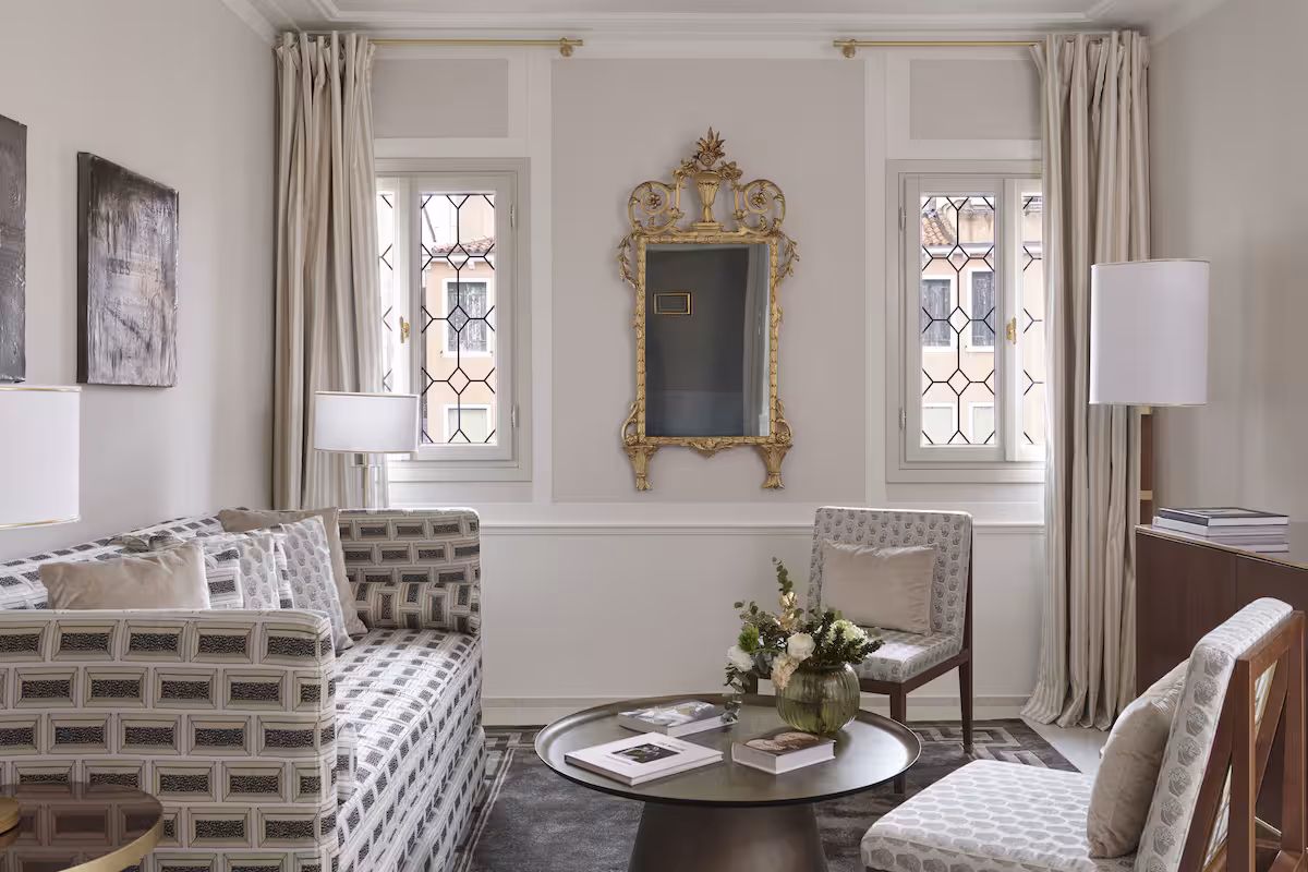 The hotel itself balances modern luxury with restrained Venetian elegance, offering calm interiors, refined finishes, and service that feels composed rather than performative.