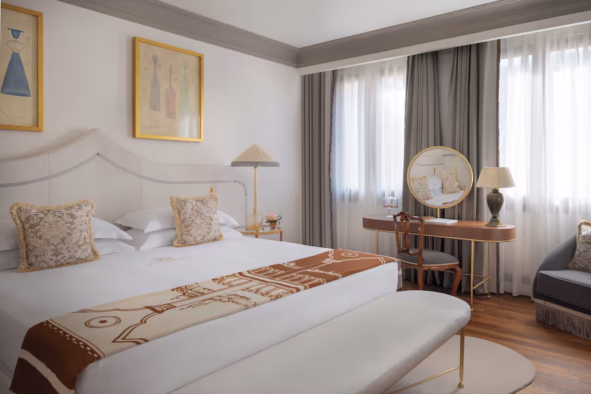 These images capture why Hotel Gabrielli – Starhotels Collezione is consistently chosen by travelers who want Venice at its most composed. Lagoon-view suites open the city outward rather than enclosing it, with generous sitting areas designed for lingering mornings and unhurried evenings. Private terraces frame the sunset over the water, while interiors balance classic Venetian character with the restraint of true luxury—never crowded, never ornamental for show. Spa-level bathrooms, refined materials, and a rooftop terrace overlooking the lagoon complete an experience defined by calm authority rather than spectacle. This is Castello at its best: elevated, spacious, and deliberately quiet.